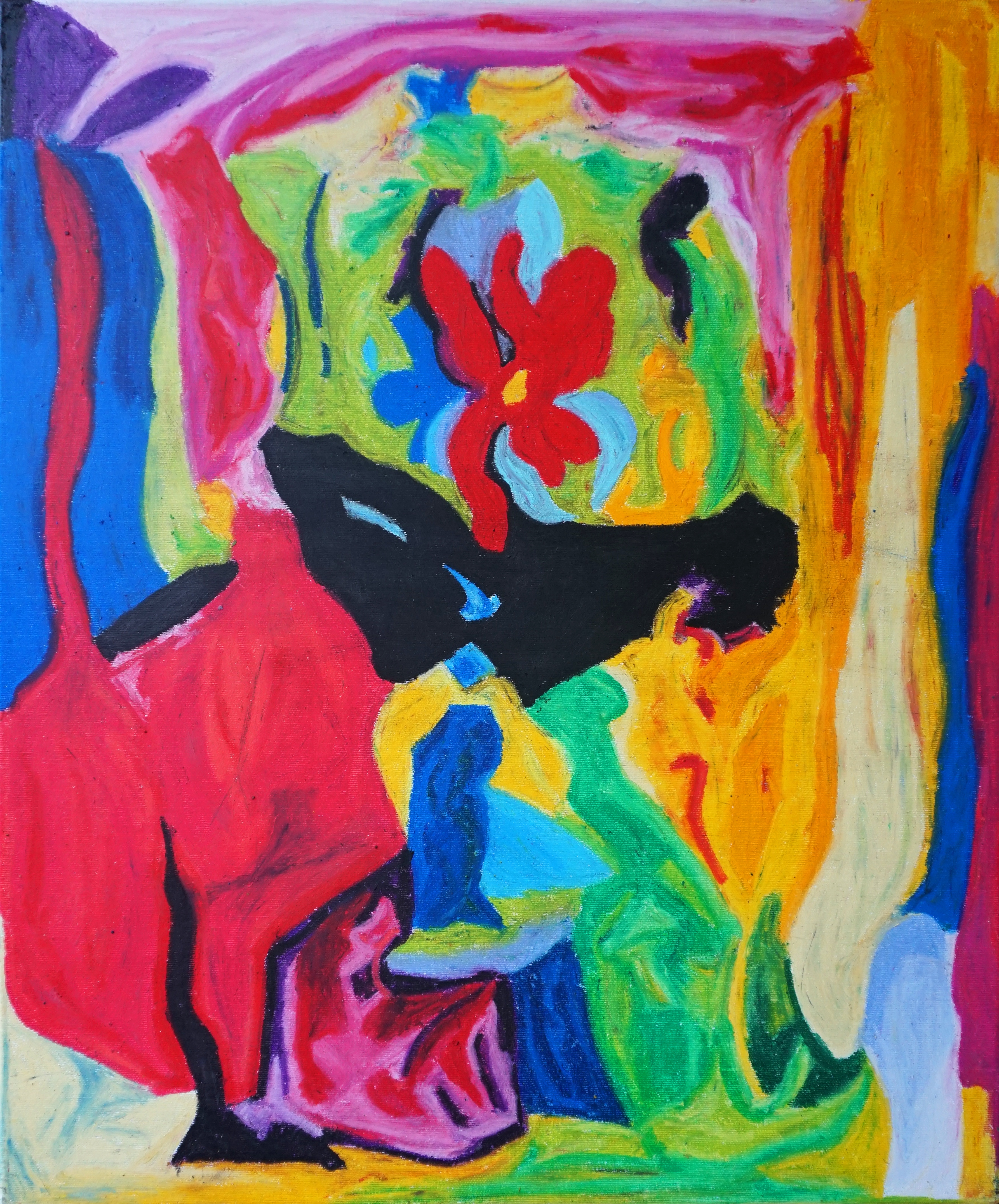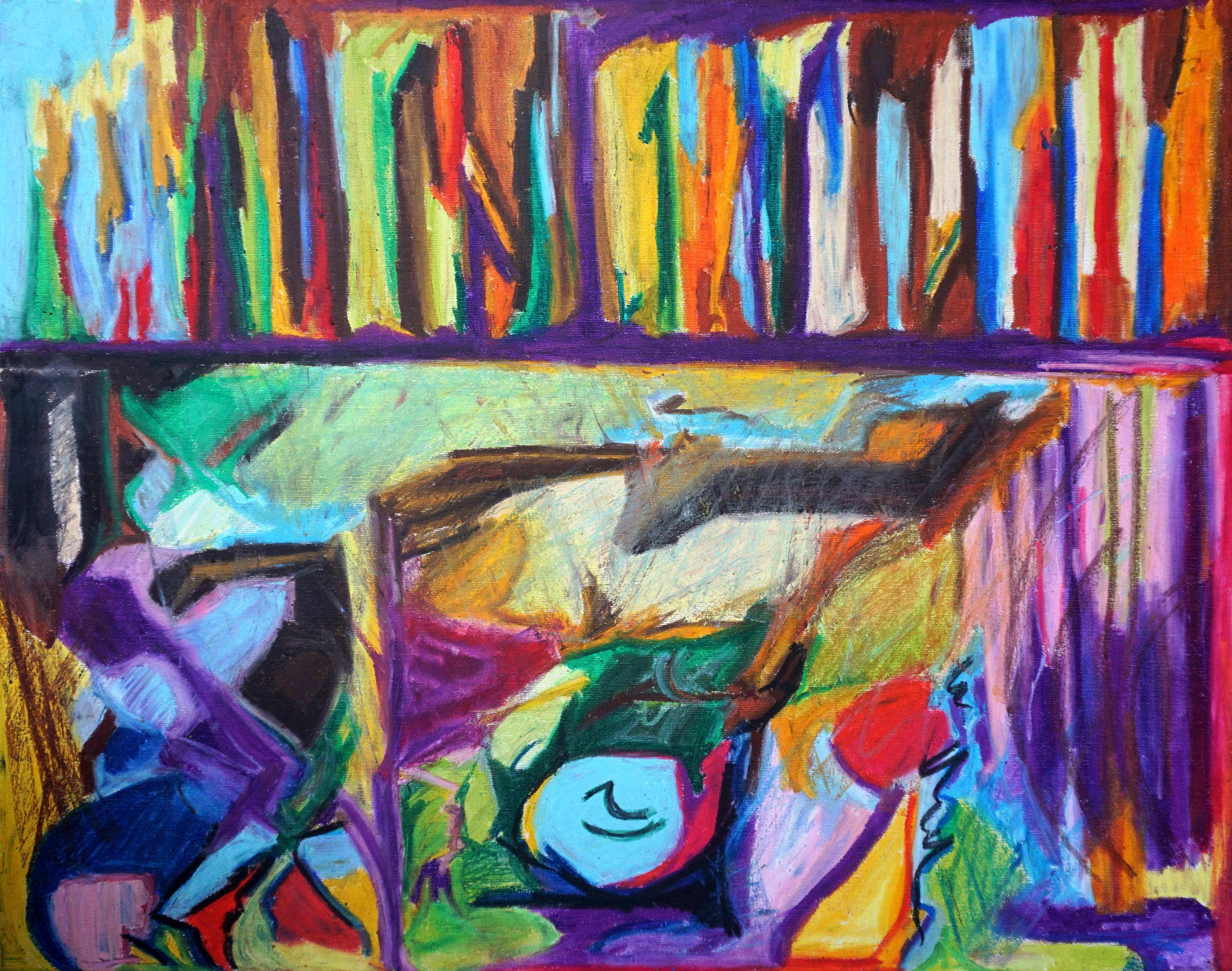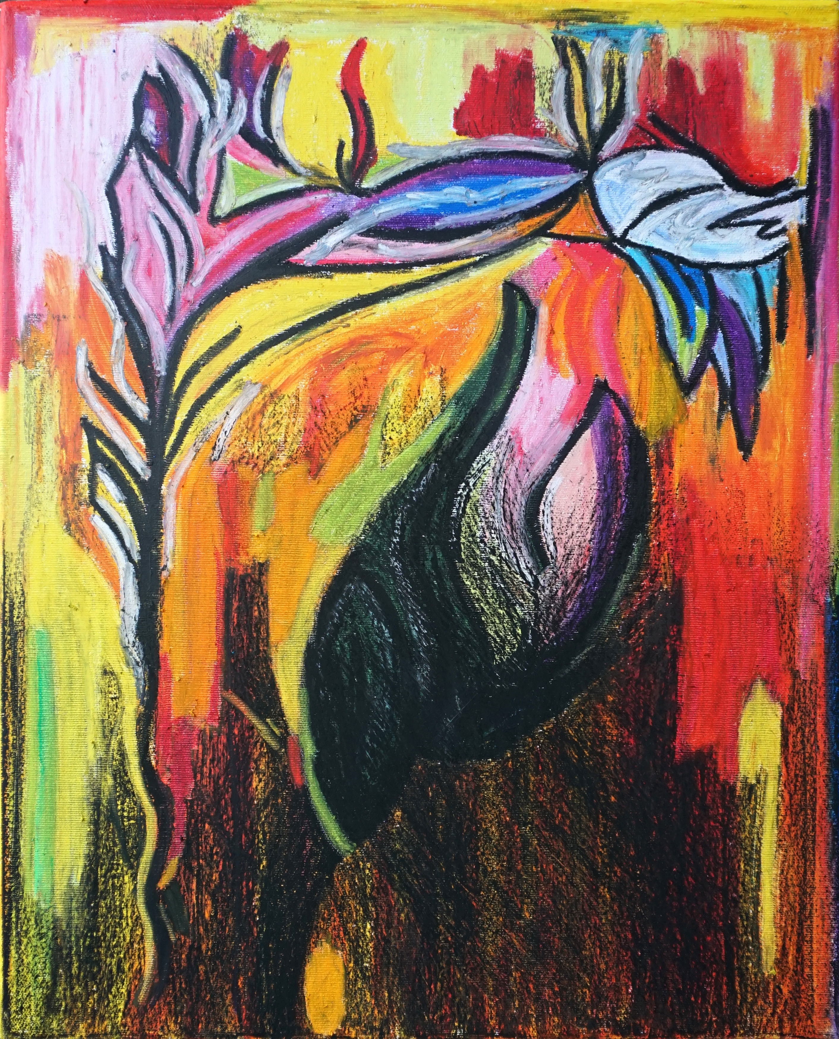 oil pastel, acrylic base, canvas