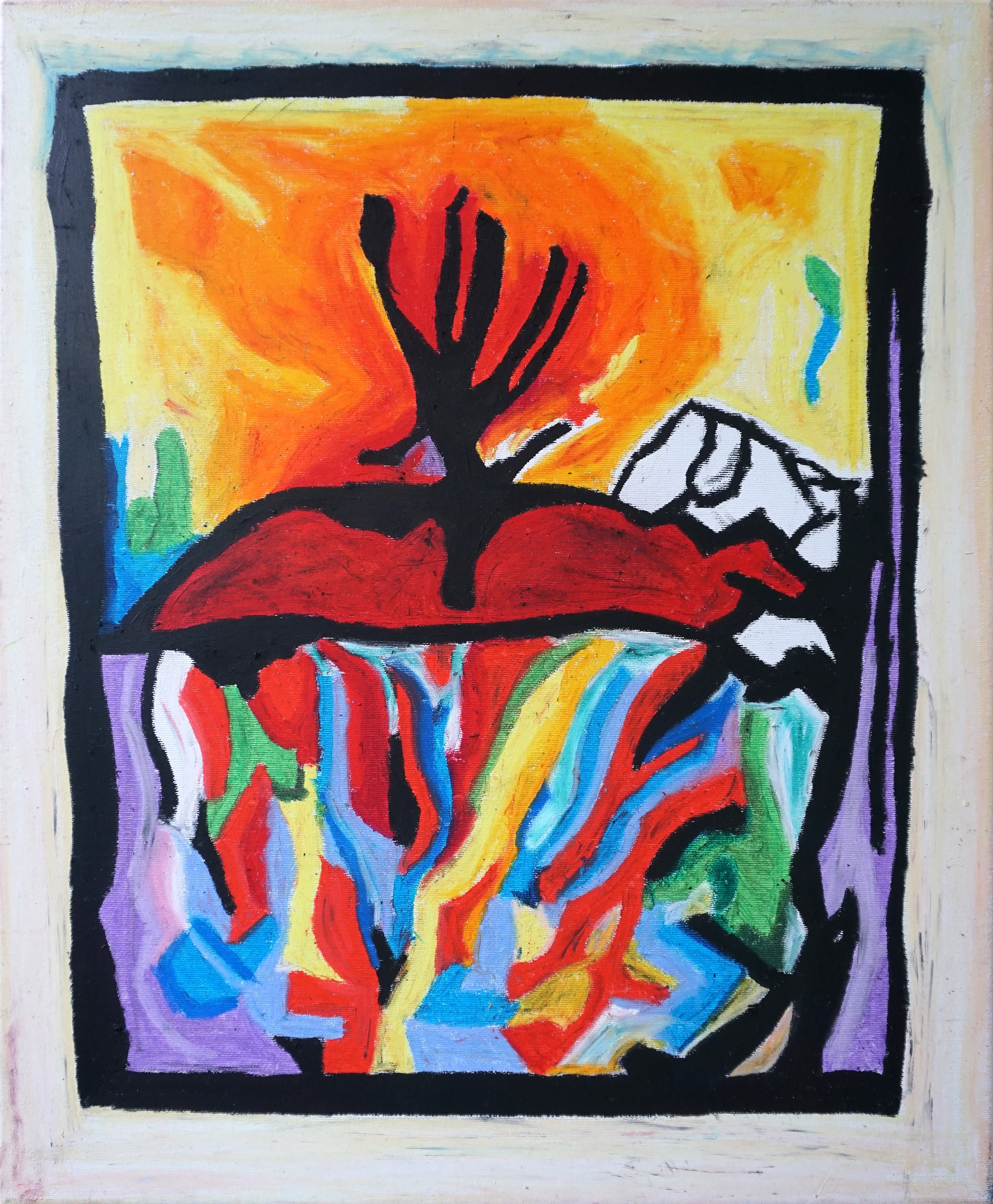 oil pastel and oil on acrylic base, on canvas